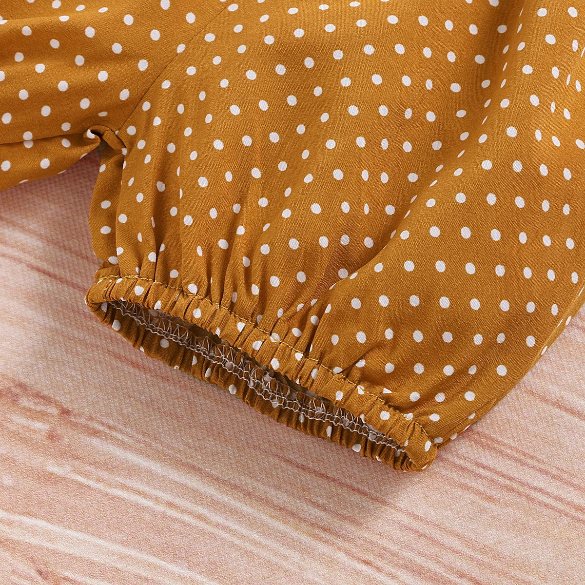 This casual romper and dotted pants combo with an elastic waistband offers comfort and style, paired with a bowknot headband for added flair.