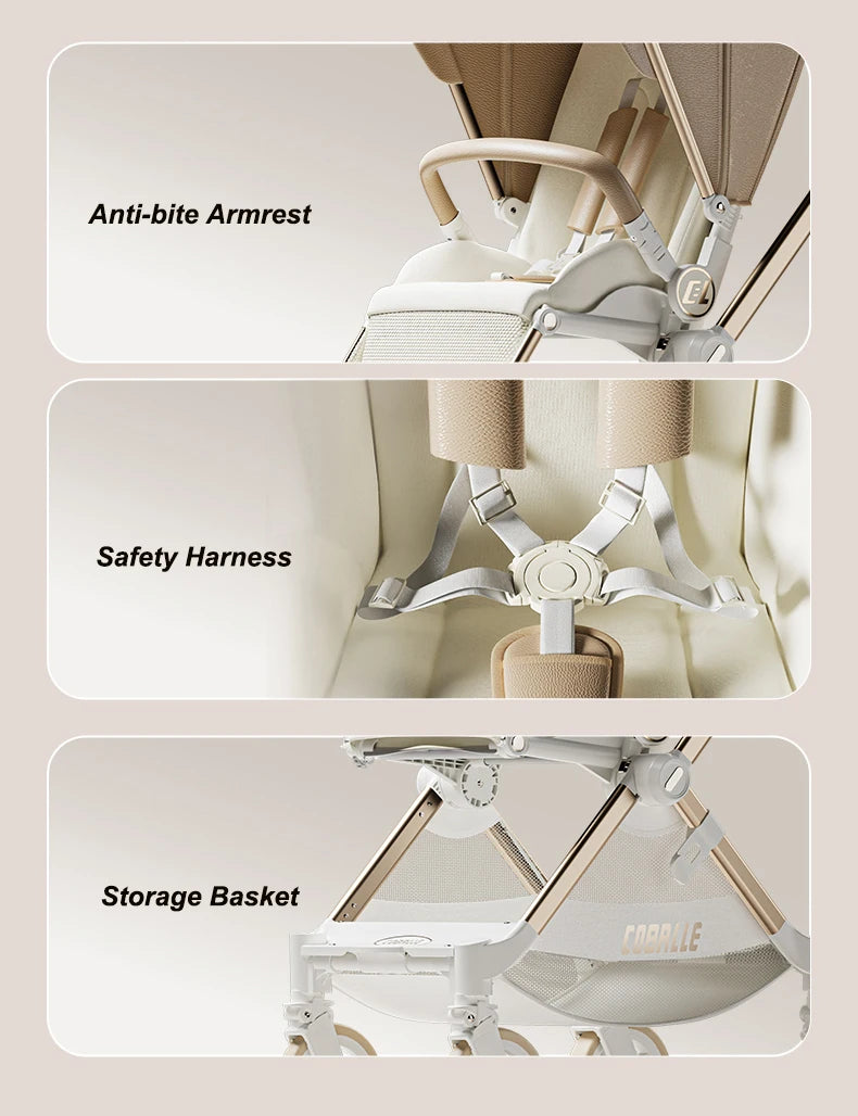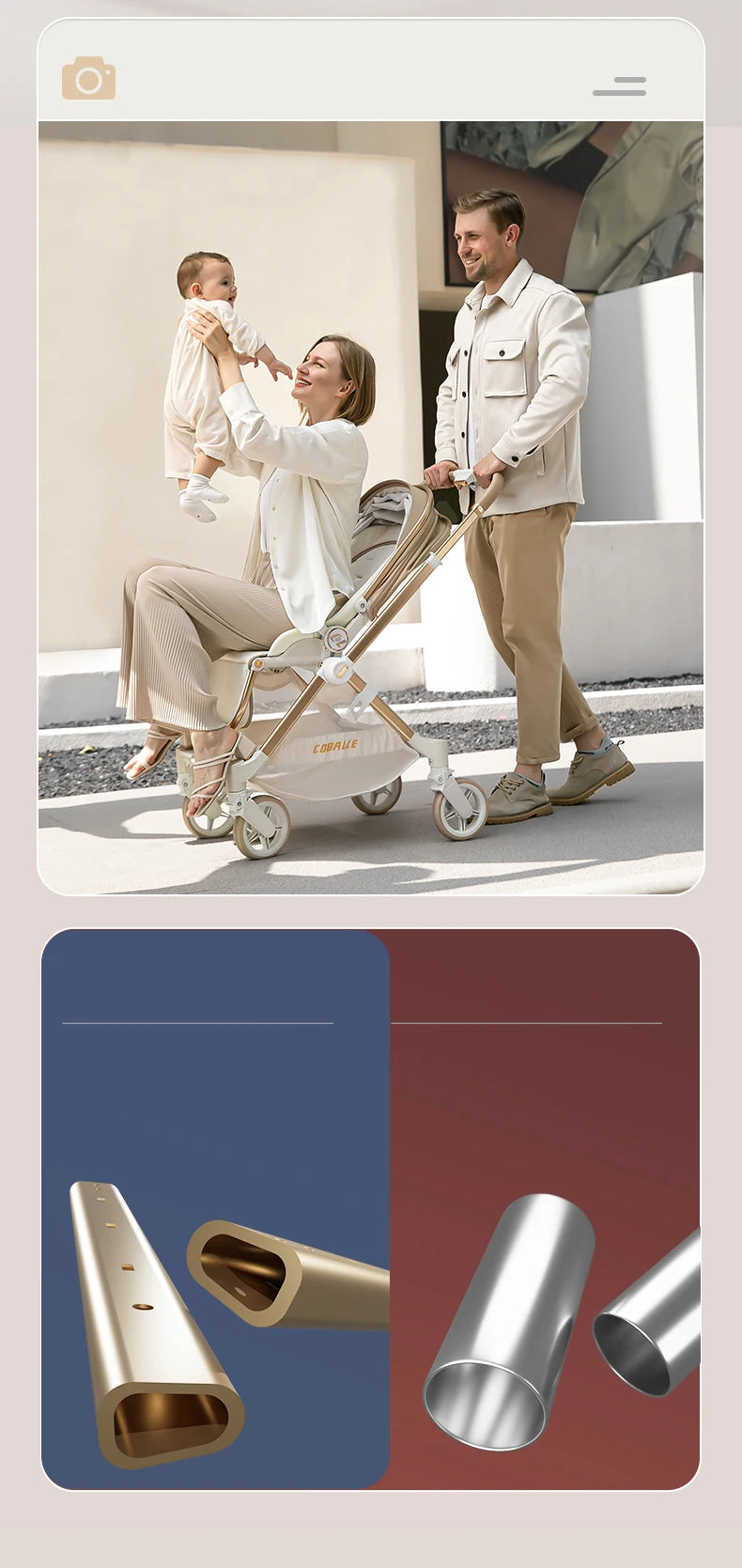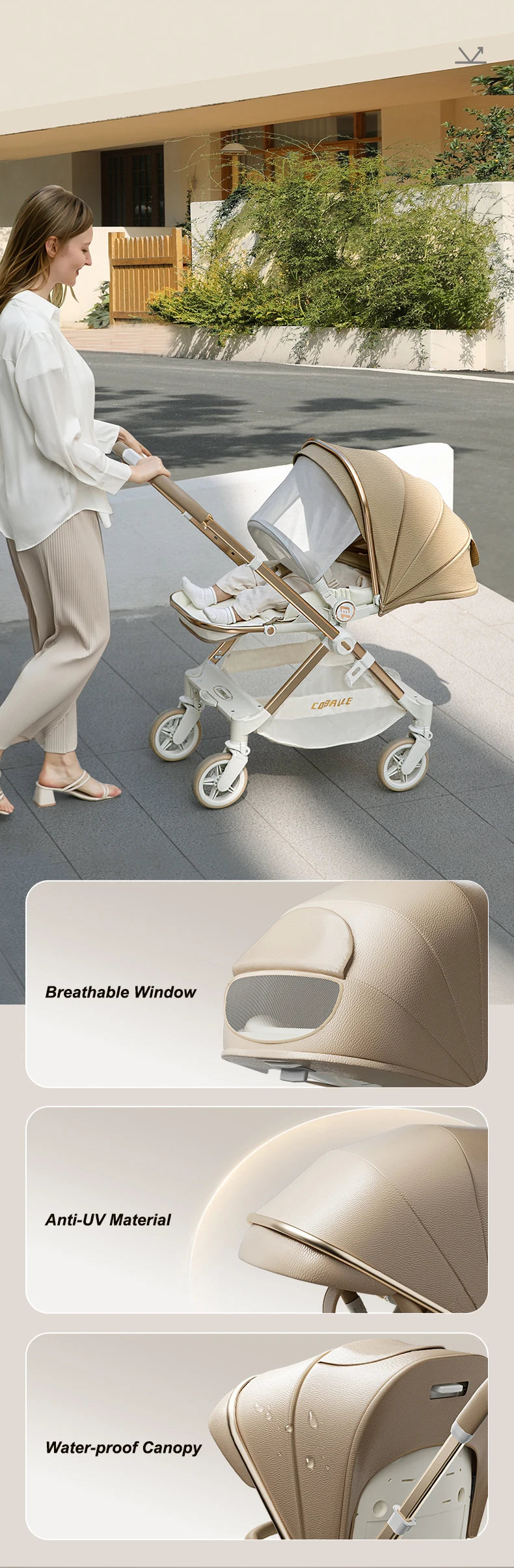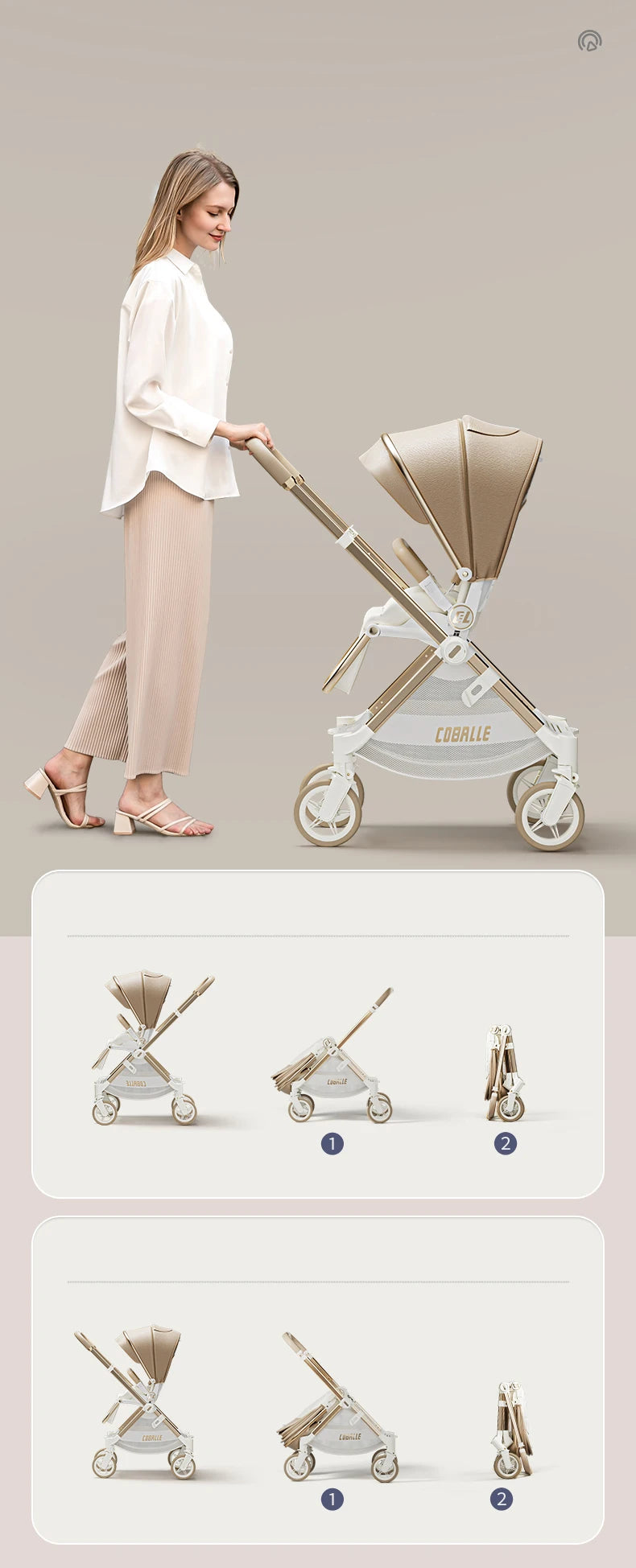 Experience the thrill of the 2025 Coballe Convertible Full-Size Baby Stroller! This stroller boasts a reversible seat, capable of bearing loads up to 20kg, and all-terrain wheels for maximum adventures. Its new design features ergonomic elements, with an alloy aluminum frame and luxurious micro fiber leather. Don't miss out on this smart and stylish stroller!