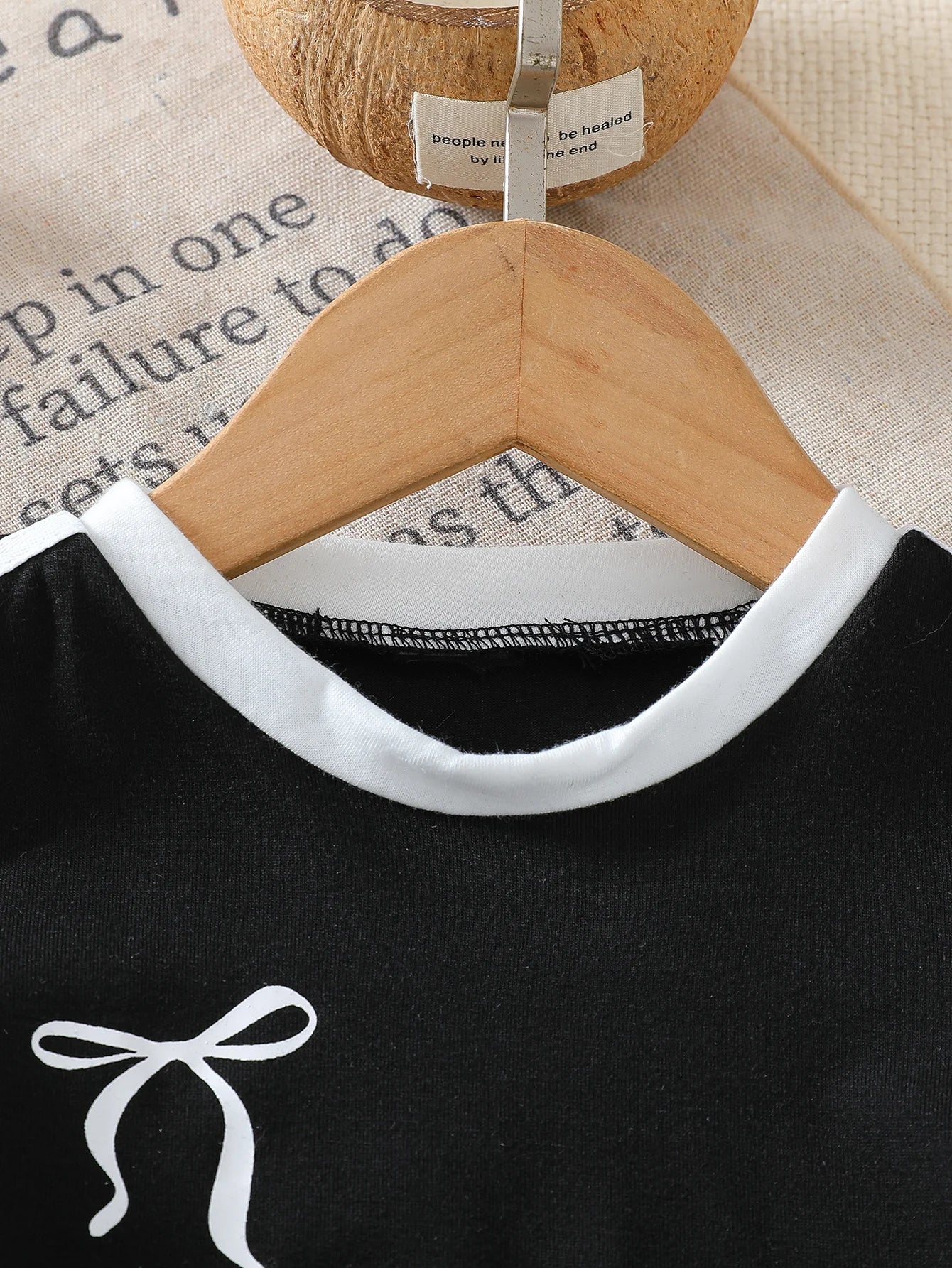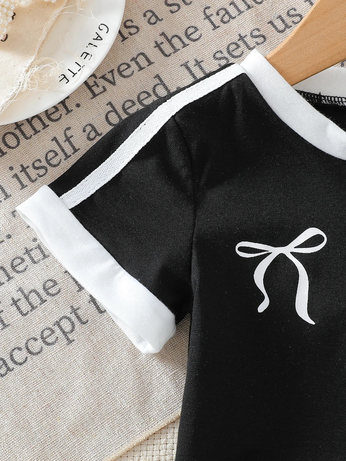 This bold summer set features a solid color bowknot short-sleeve T-shirt paired with flared long pants.