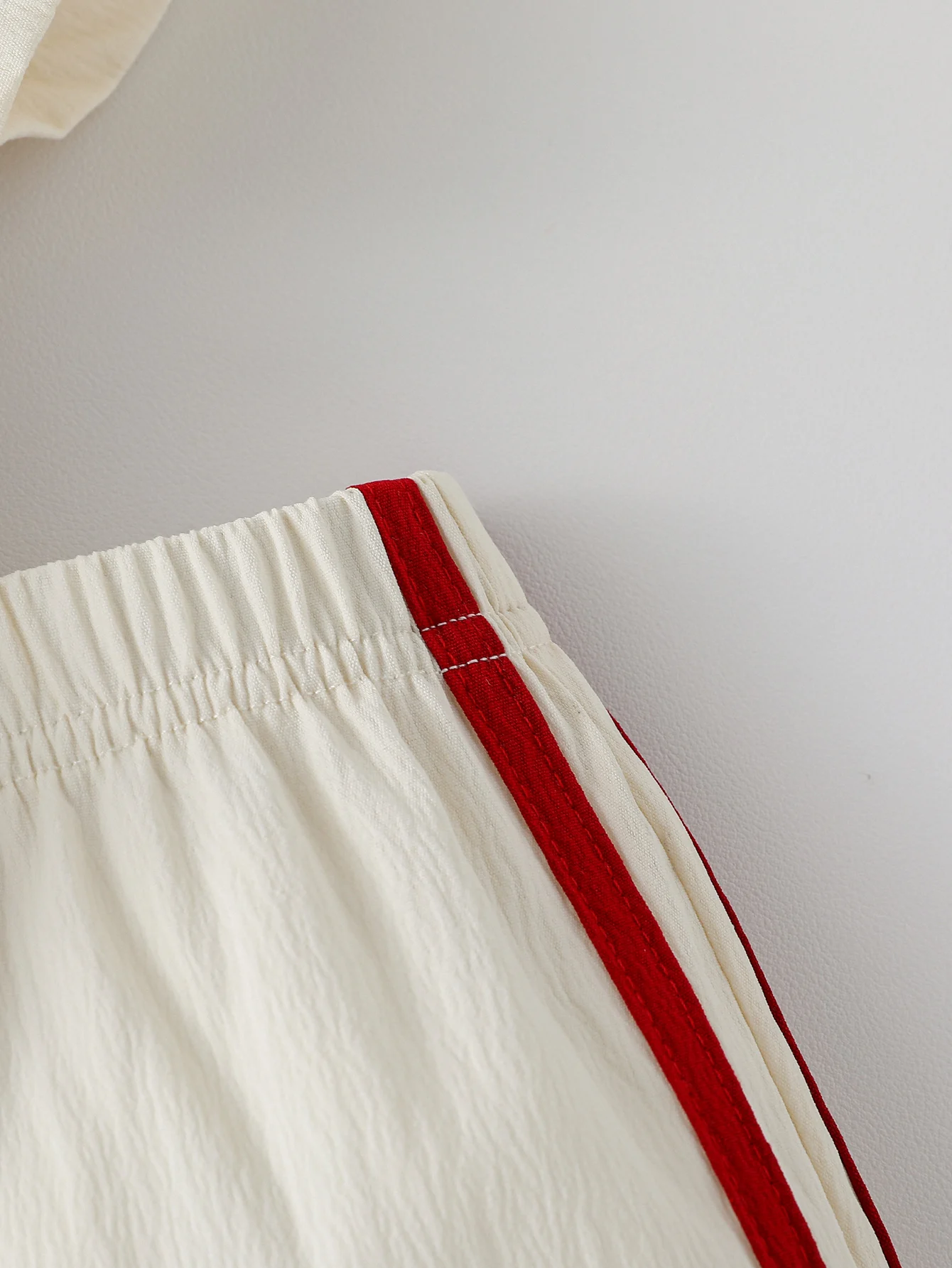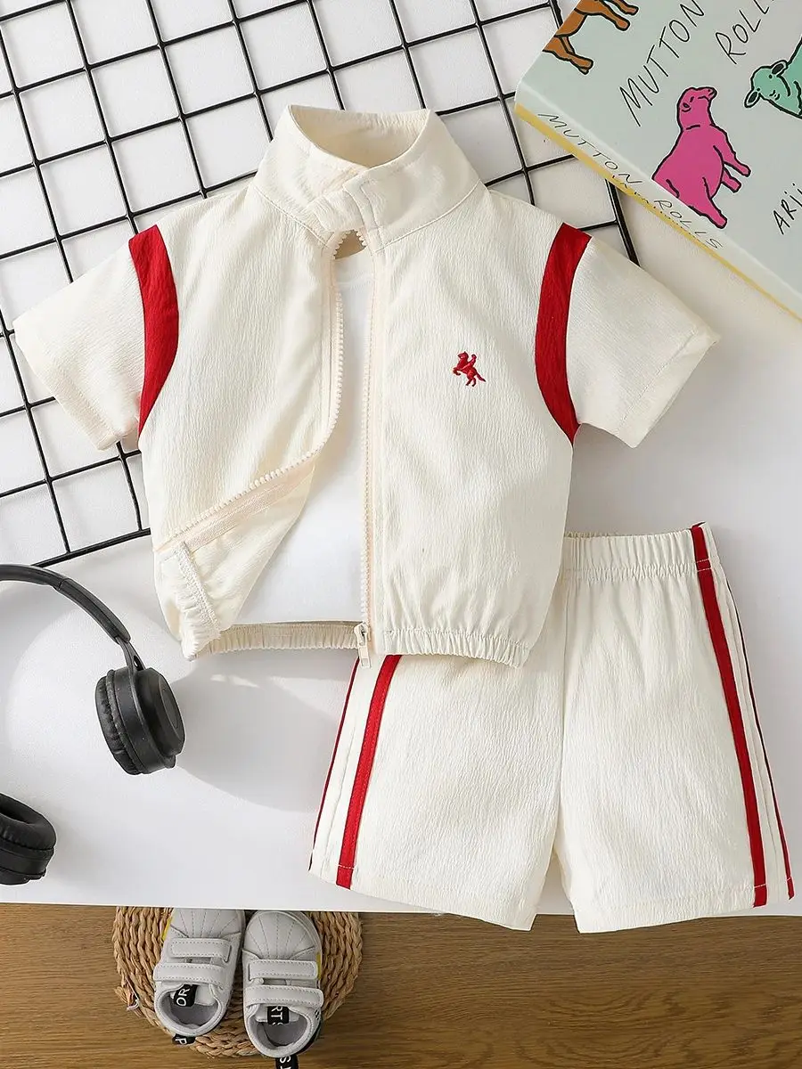 Get your little guy ready to conquer summer in this daring 2-piece set featuring short-sleeve tops and sporty shorts.