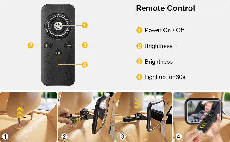 Put your baby in the spotlight with this 360° adjustable Baby Car Mirror. Featuring multi-level brightness adjustment, a wireless remote control, and a rechargeable battery, this Baby Mirror is perfect for parents who aren't afraid to take on new challenges!