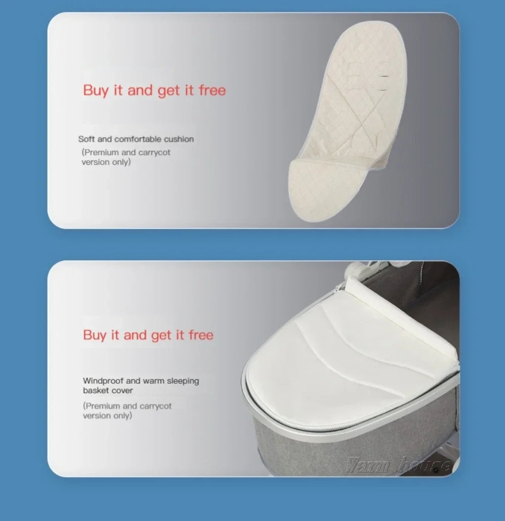 This premium baby carriage, crafted with high-quality stainless steel and luxurious PU leather, offers a smooth and comfortable ride for your little one. With the option to customize your stroller with a car seat or use it as a three-in-one system, it provides unmatched versatility and convenience for families on the go.