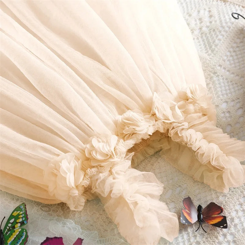 Featuring an O-neck collar and delicate bow detailing, it combines elegance and charm effortlessly. Sleeveless with pearl accents, this knee-length tutu gown is perfect for birthdays, weddings, or first communions. Crafted from polyester, viscose, and mesh, it offers a true-to-size fit and a classic ball gown silhouette that lets your child shine confidently at any event.