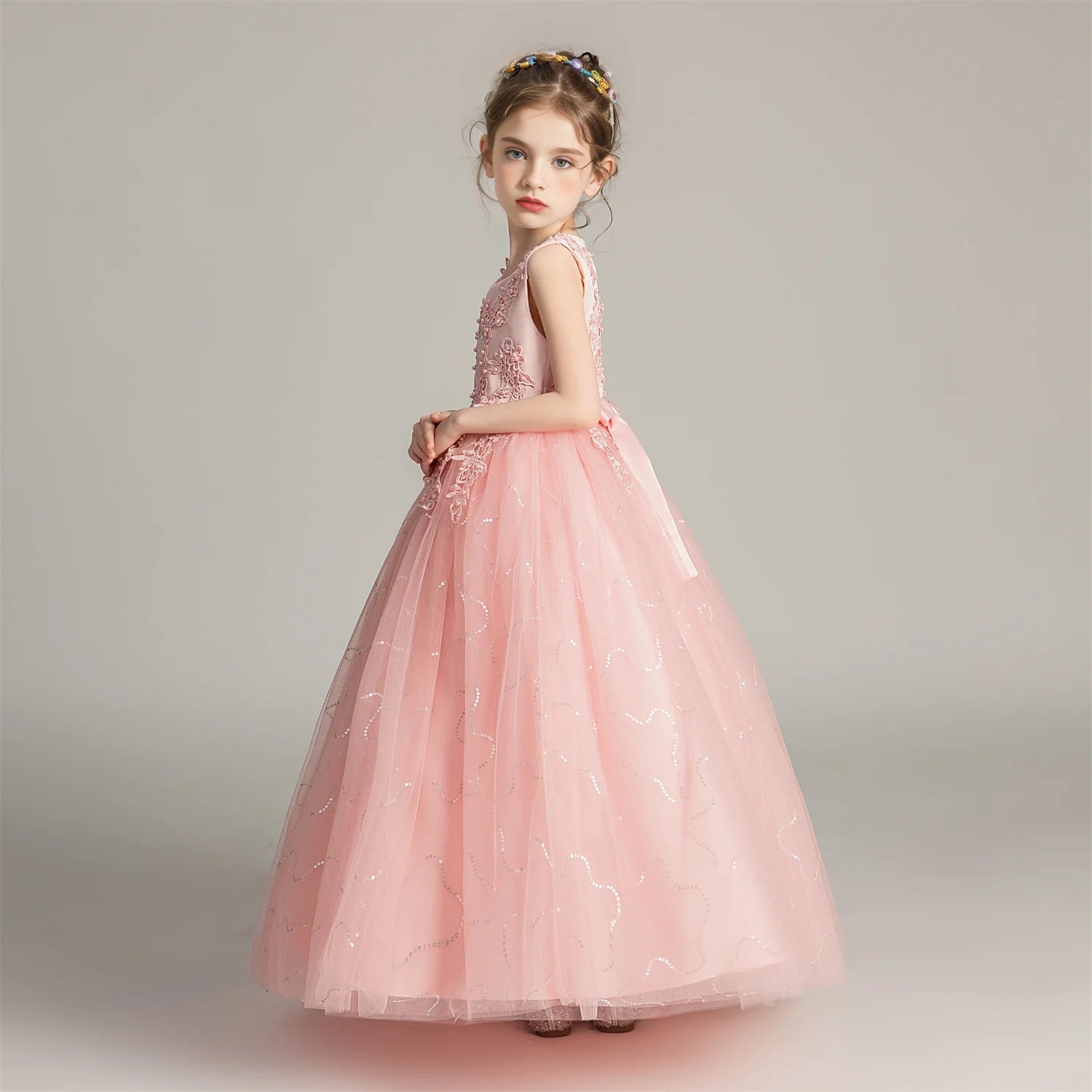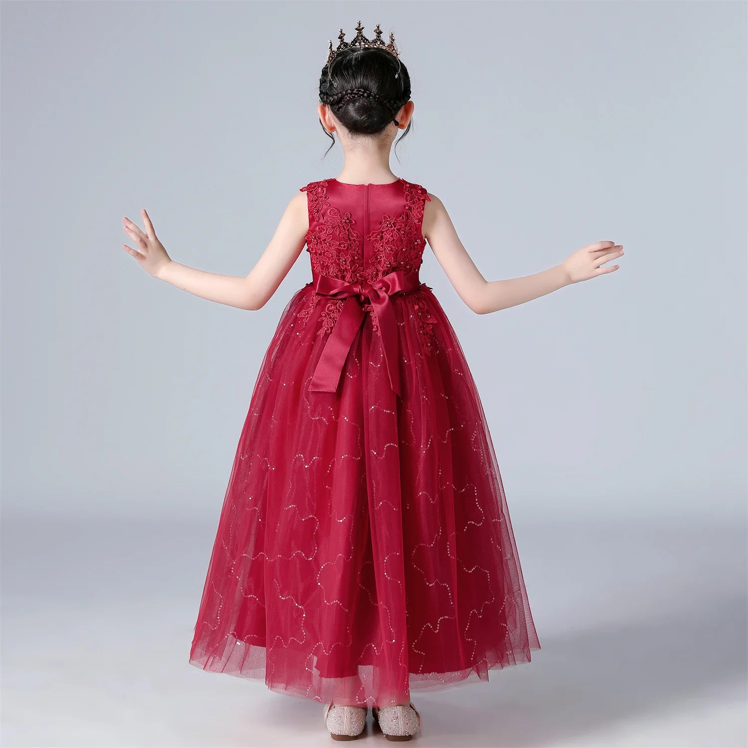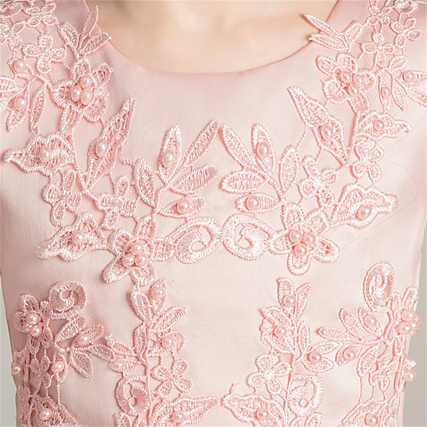 This daring girls' lace dress features an elegant O-neck and intricate tatting craftsmanship, perfect for making a bold statement at weddings, parties, or special evenings.