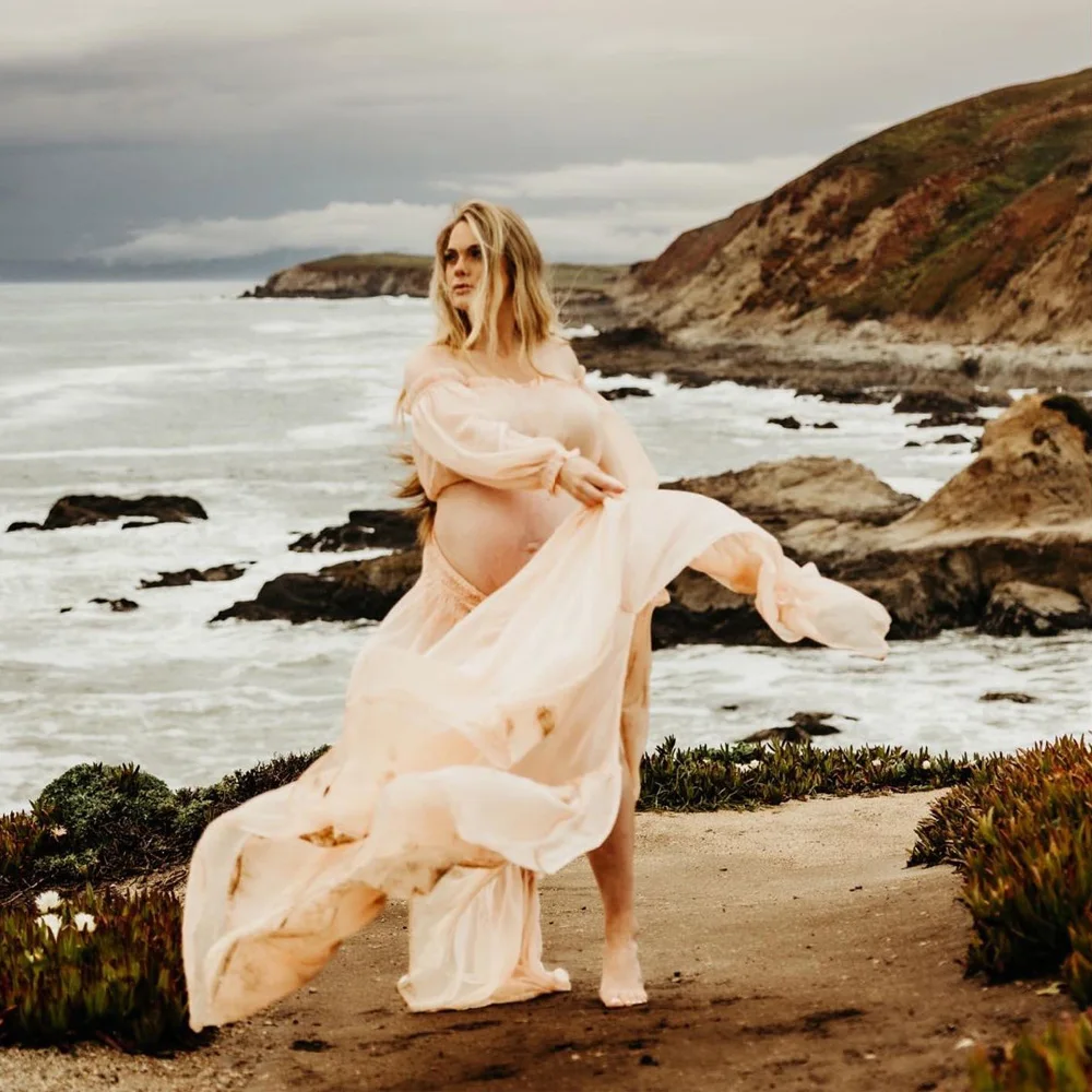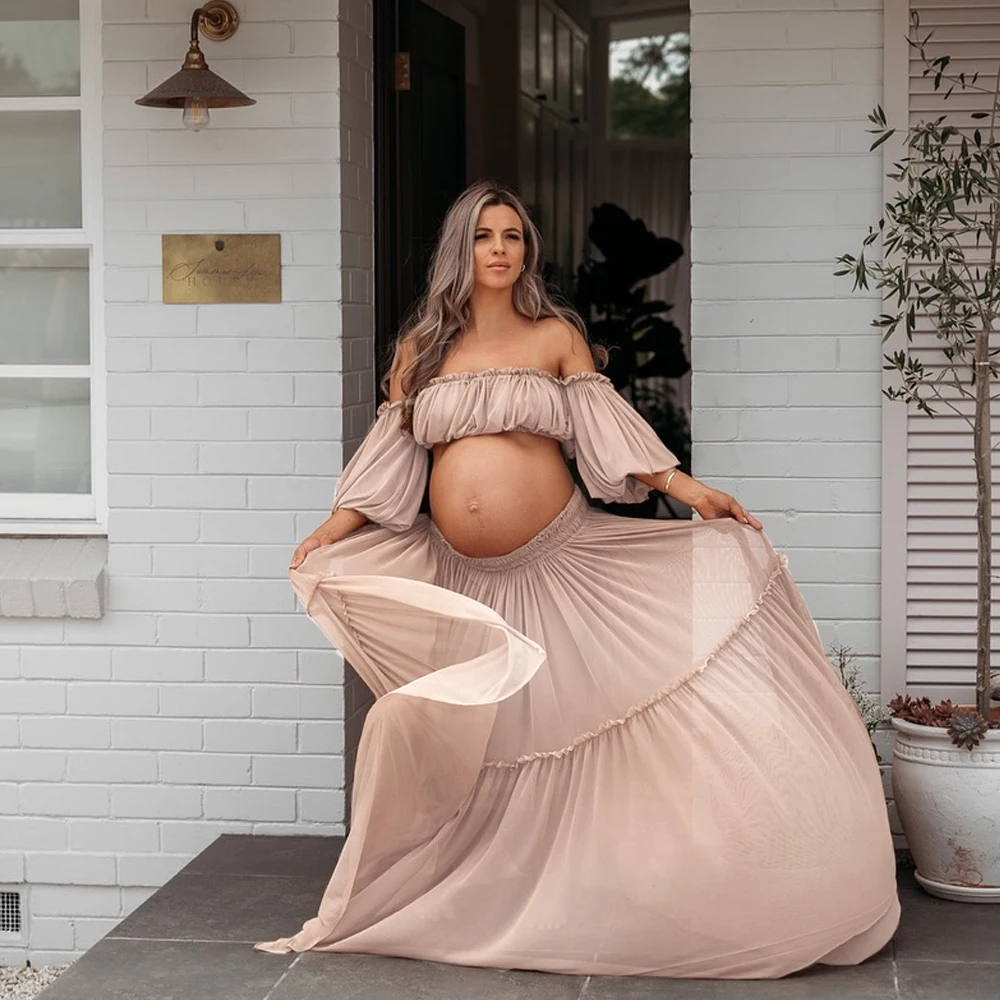 Get ready to strut your baby bump in style with our Chiffon One Shoulder Lace Long Sleeve Two Piece Dress. Perfect for your maternity photoshoot, this Bohemian-inspired dress features a playful off-shoulder collar and delicate ruffles. Made with comfortable and stretchy polyester, spandex, and voile fabric, it's suitable for all seasons. Choose from a variety of natural colors and embrace your cute and elegant side. With its ankle-length A-line silhouette and full sleeves, this dress will make you feel confident and beautiful. And hey, it's easy to put on and take off - perfect for those pregnancy bathroom breaks! (And we know you have a lot of them.)