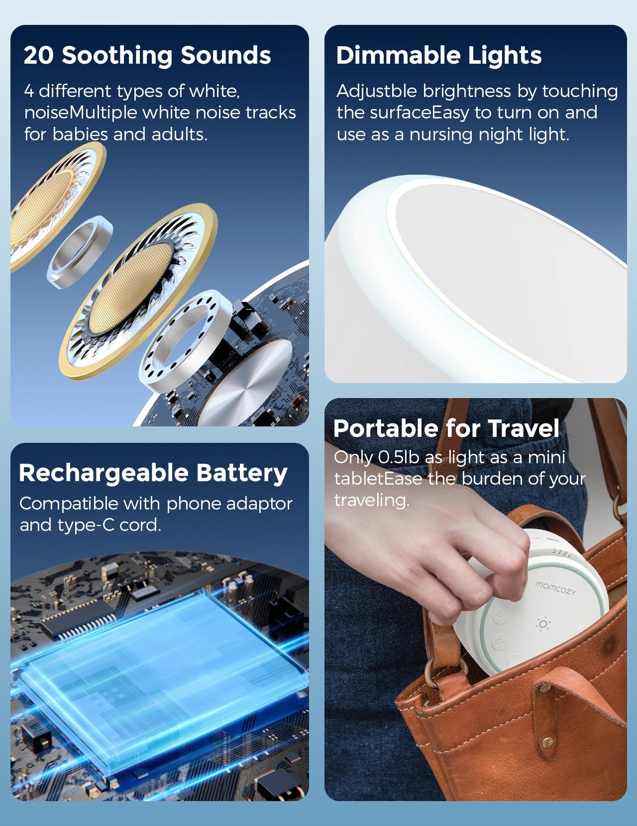 While perfect for home use, this lamp is also portable for travel, with a compact design and quick charging capabilities. Whether at home, in the office, or on the go, the Momcozy - White Noise Machine is the perfect solution for a peaceful