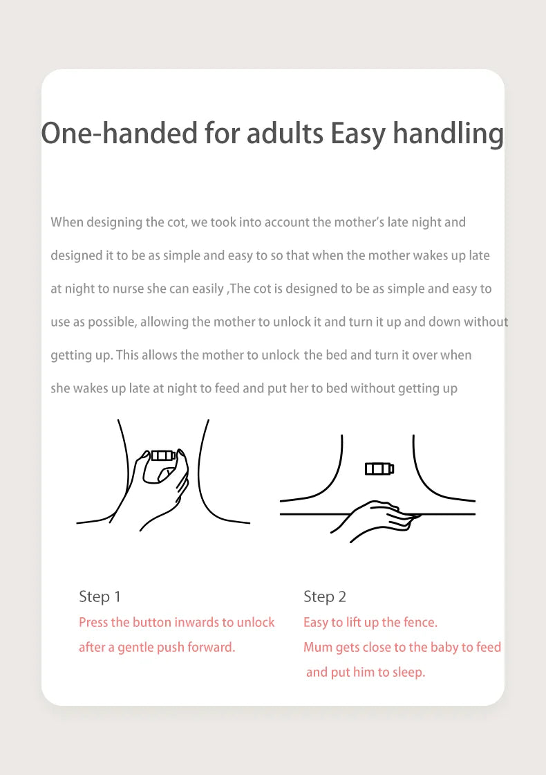 Plus, with the option to lift the cot up and secure it in place with the press of a switch or using the side straps, you can rest assured knowing that your baby is always protected. This versatile cot can be used until your baby is 0-3 years old, at which point it can be transformed into a bed fence that can be adjusted to fit a 1.8m or 2m bed, ensuring safety until your child is 6 years old.