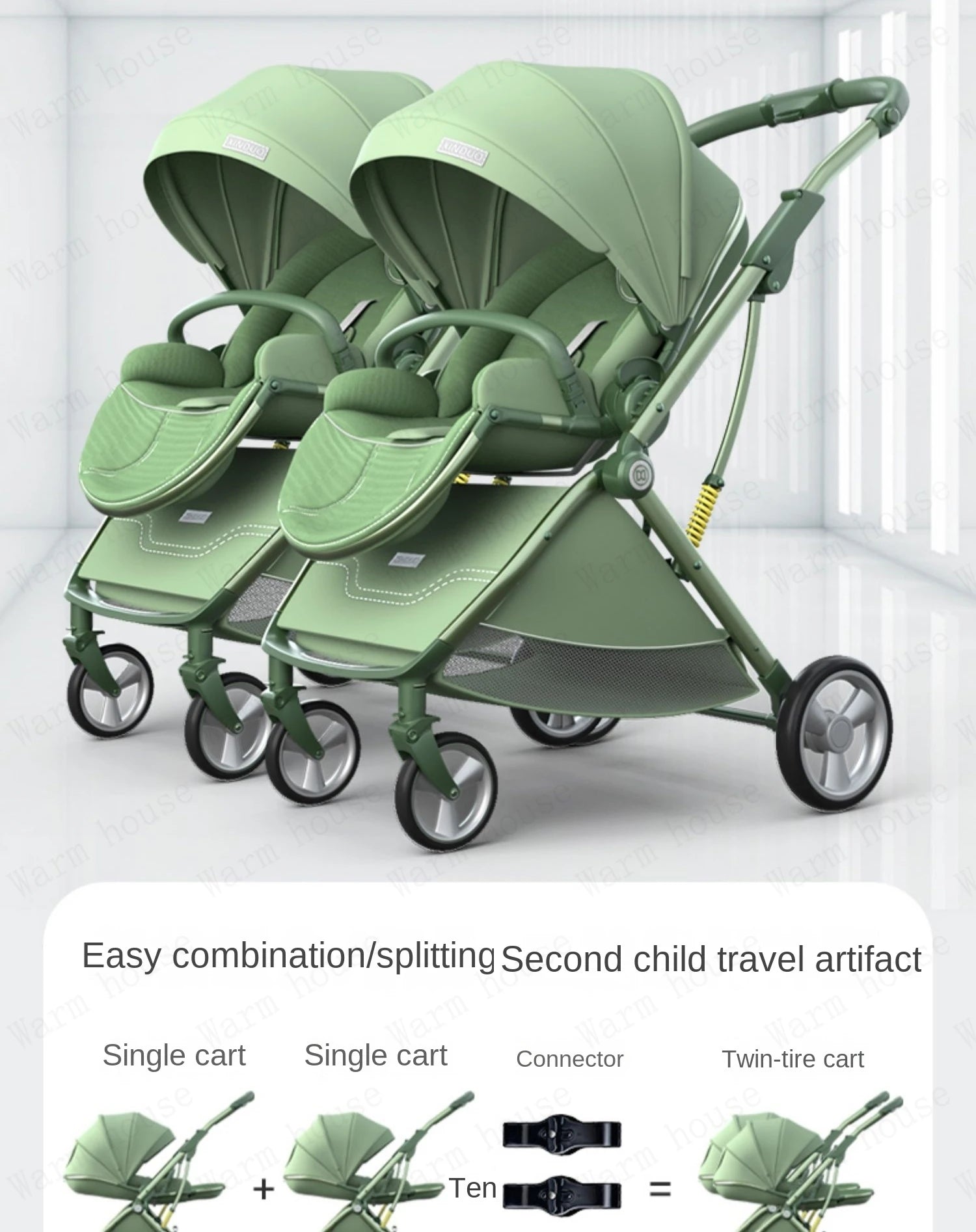 Introducing the revolutionary New Twins baby Stroller - perfect for your little twins! Easily foldable, this clever stroller features Shock absorption and Splitable design, making it ideal for all your travels.