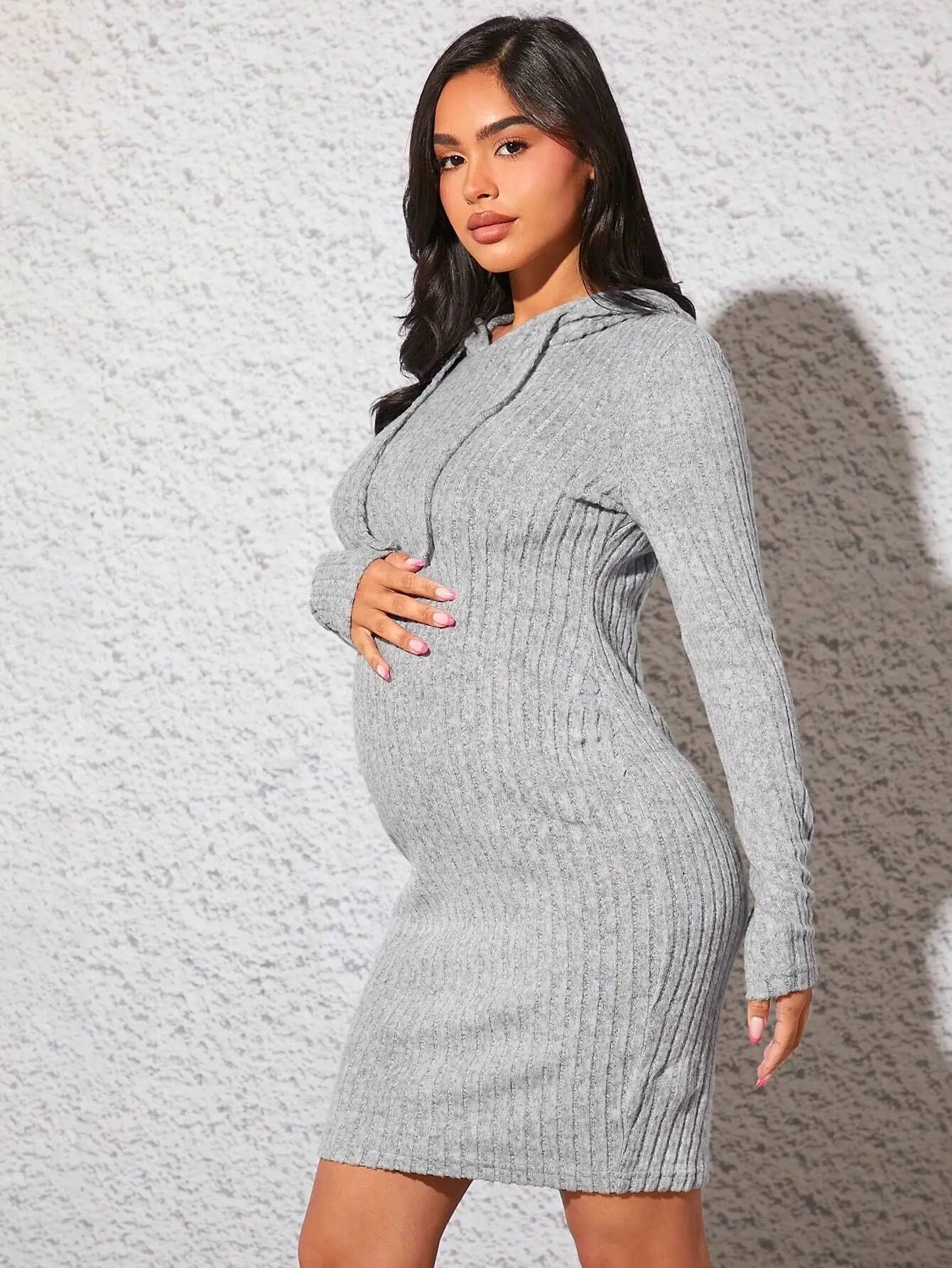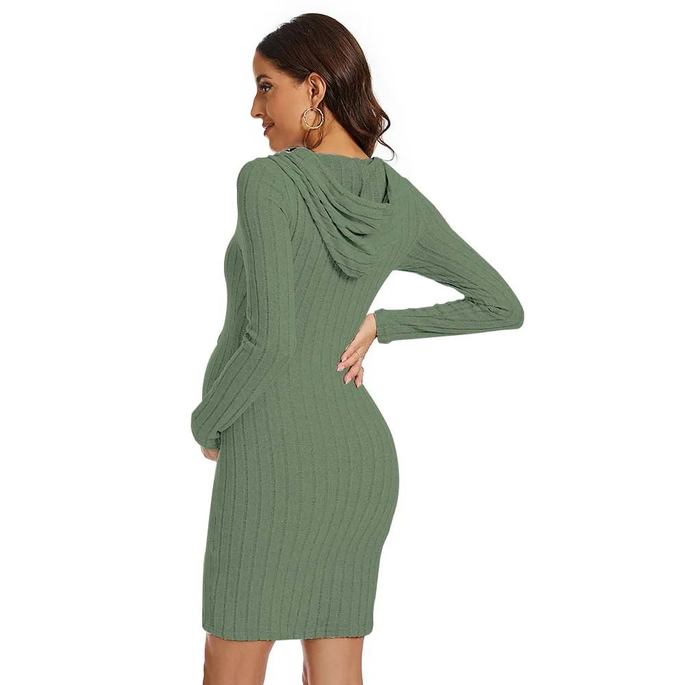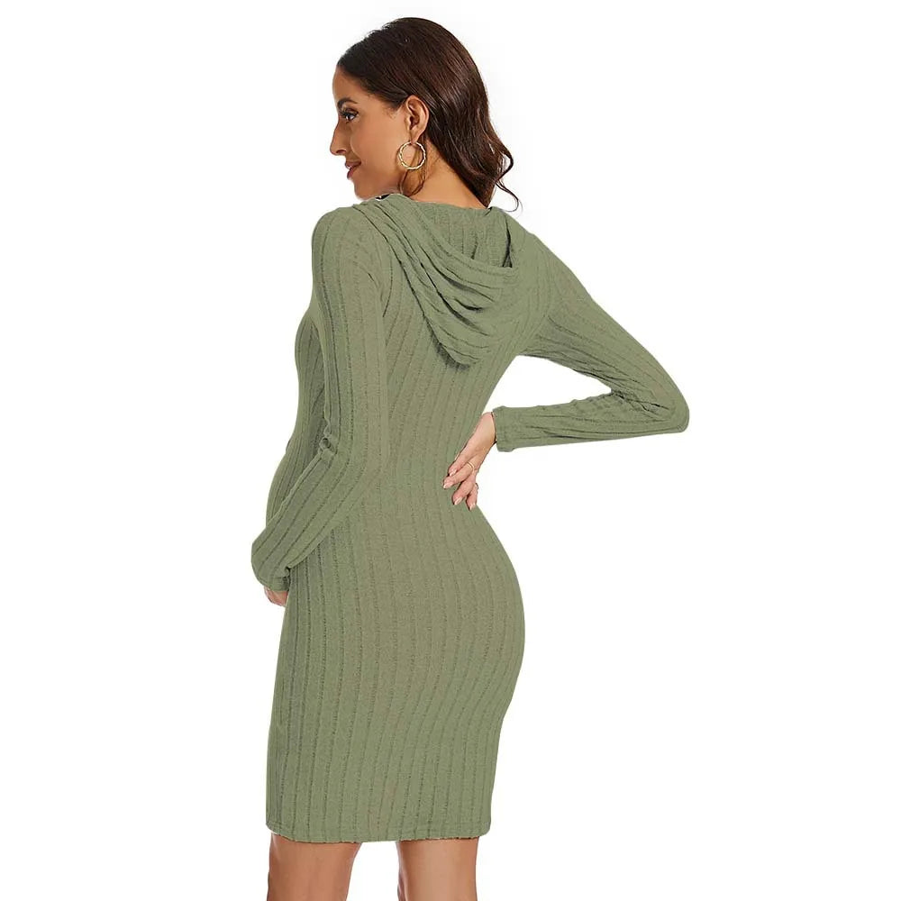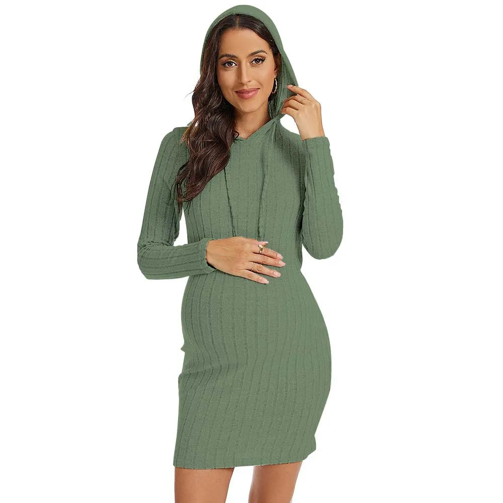 Stay cozy and fashionable this autumn with this Knit Hoodie Pregnancy Dress.