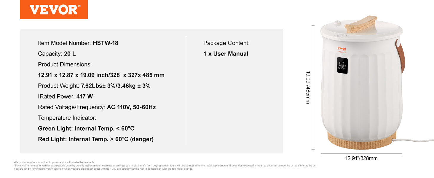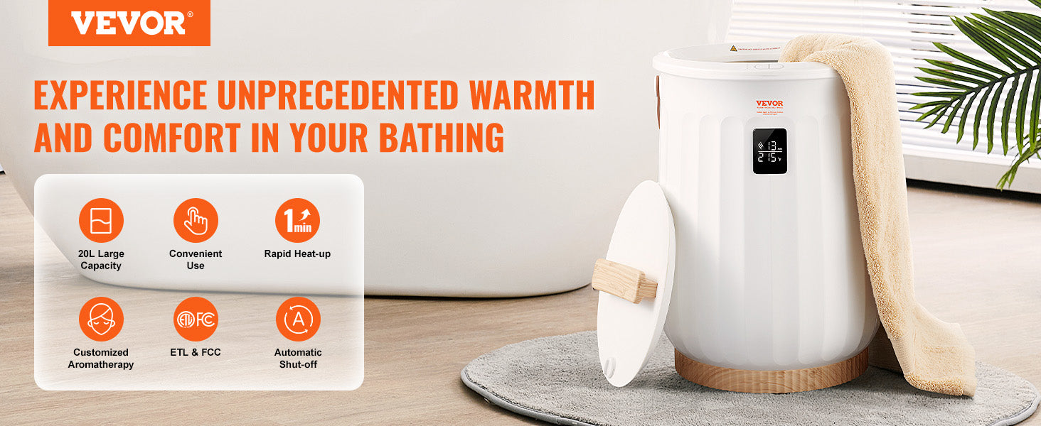 - Spacious Capacity: With a generous 20L capacity, VEVOR large towel warmer accommodates two oversized towels measuring 70 x 40 inches (approximately 177.8 x 101.6 cm). It's a must-have for larger households, ensuring everyone enjoys warm, cozy towels, robes, blankets, and more.